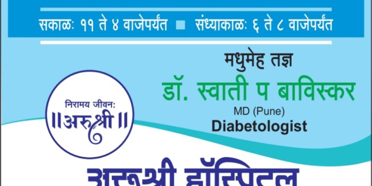 अरूश्री हॉस्पिटलकडून देण्यात आलेल्या माहितीनुसार आता या हॉस्पिटलमध्ये मधुमेहाच्या रुग्णांची बाह्यरुग्ण तपासणी आणि उपचार सकाळी ११ ते दुपारी ४ आणि सायंकाळी ६ ते ८ वाजेपर्यंतच्या वेळेत मधुमेहतज्ज्ञ डॉ.स्वाती बाविस्कर यांच्याकडून केली जाणार आहे . डॉ.स्वाती बाविस्कर यांची ओळख या आजारावरील देवदूत अशी आहे , असे म्हटल्यास अतिशयोक्ती होणार नाही . त्यांचा प्रदीर्घ अनुभव आणि अरूश्री हॉस्पिटलमधील आधुनिक उपचार सुविधांचा मोठा फायदा आता उत्तर महाराष्ट्रातील मधुमेह रुग्णांना होणार आहे .