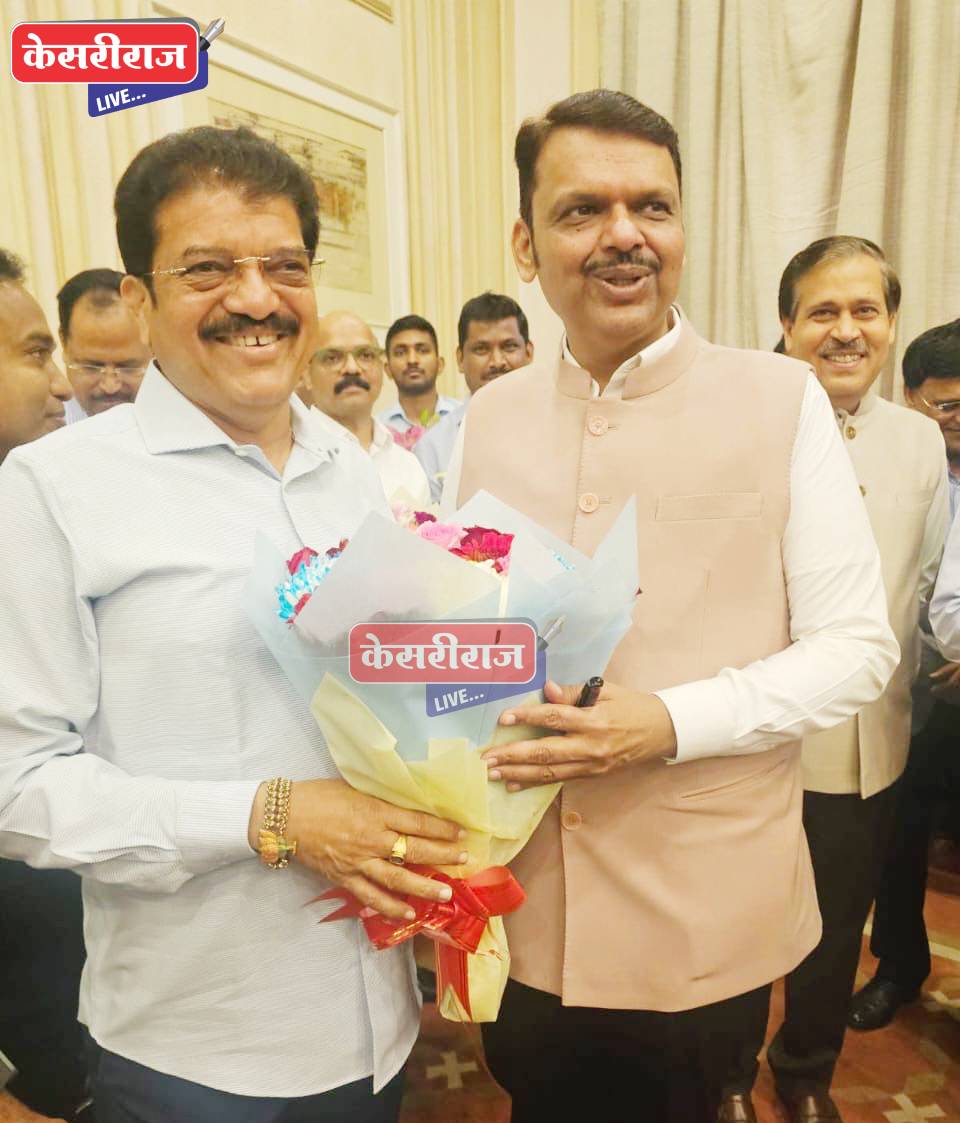 या मोठ्या विजयाची माहिती देण्यासाठी आणि पुढील नियोजनासाठी आमदार राजूमामा भोळे यांनी आज मुंबईत मुख्यमंत्री देवेंद्र फडणवीस यांची भेट घेतली. मुख्यमंत्र्यांनी भोळे यांचे पुष्पगुच्छ देऊन स्वागत केले आणि त्यांच्या निवडणूक नियोजनाचे कौतुक केले.