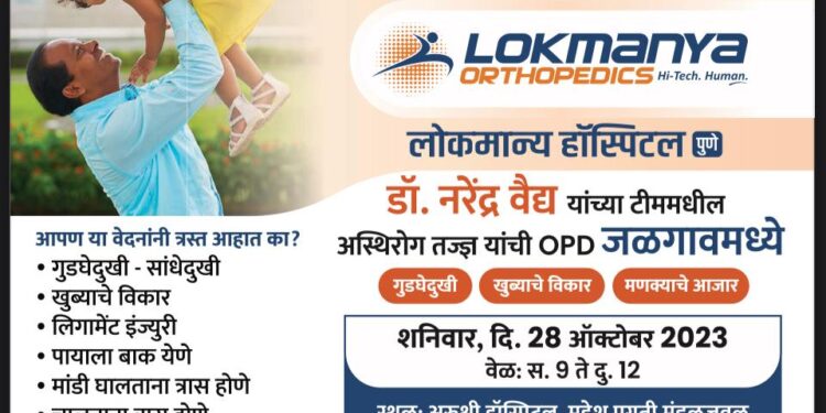 जळगाव येथे लोकमान्य हॉस्पिटल पुणे,येथील आंतरराष्ट्रीय किर्तीचे रोबोटिक सांधेरोपण तज्ञ डॉ नरेंद्र वैद्य यांची टीम आज 28 ऑटोबर शनिवार रोजी जळगाव शहरात येत आहे.