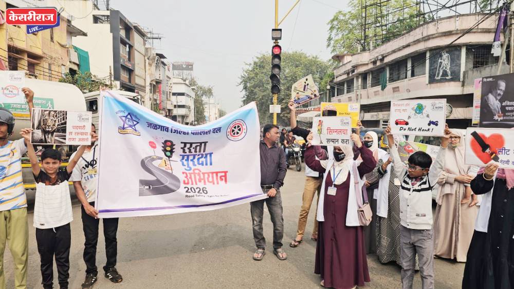 जळगाव (प्रतिनिधी):- वाहतूक नियमांकडे होणारे दुर्लक्ष आणि त्यामुळे वाढणारे अपघात हे शहरासाठी गंभीर संकट ठरत असताना, या समस्येवर थेट प्रहार करत अखिल विश्व धर्म ज्ञान संस्थेतर्फे शनिवारी जळगाव शहरातील प्रमुख चौकांमध्ये रस्ता सुरक्षा अभियान राबविण्यात आले. ‘नियम पाळा, जीव वाचवा’ या ठळक संदेशासह रस्त्यावर उतरलेल्या कार्यकर्त्यांनी वाहनचालकांना क्षणभर थांबून विचार करायला भाग पाडले.