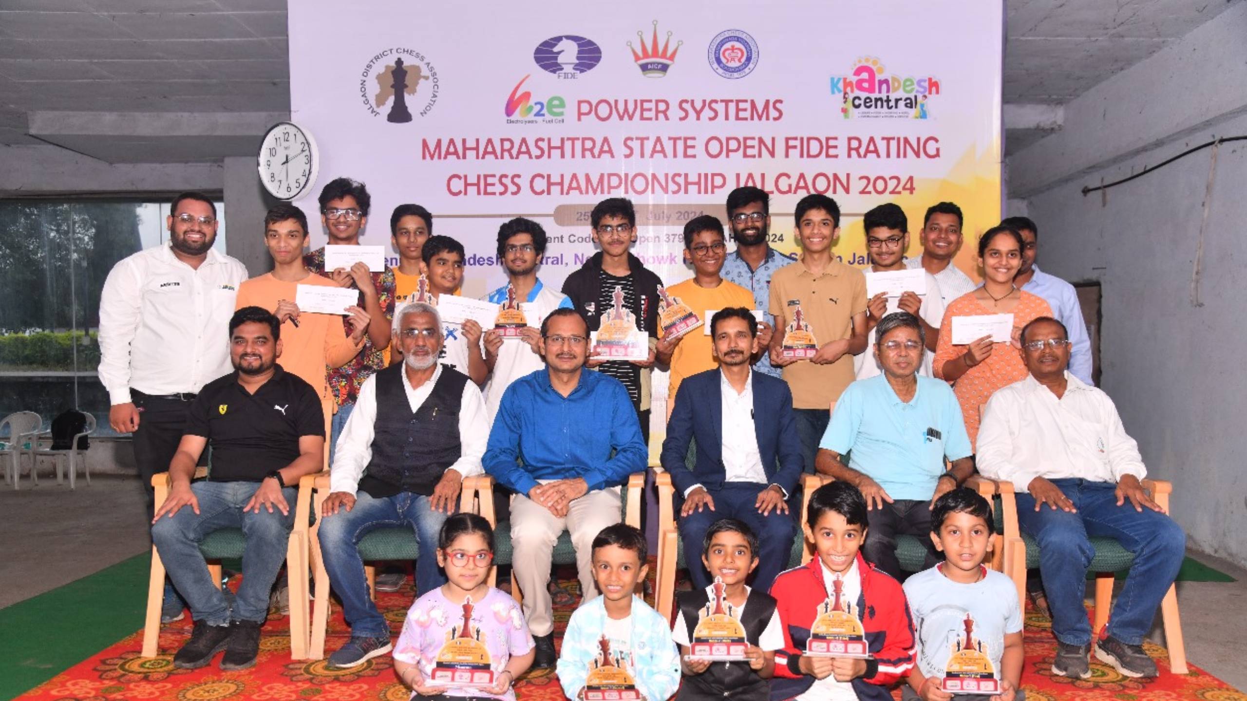 जळगाव  प्रतिनिधी – महाराष्ट्र राज्य वरिष्ठ गटाच्या बुद्धीबळ अजिंक्यपद स्पर्धेचे आयोजन जळगाव येथील खान्देश सेंट्रल येथे एच2ई पॉवर सिस्टीम्स, पुणे आणि जैन इरिगेशन सिस्टीम्स लि. यांच्या प्रायोजकत्वातून केले होते. महाराष्ट्र बुद्धिबळ असोसिएशनच्या मान्यतेने जळगाव जिल्हा बुद्धिबळ असोसिएशनतर्फे ही स्पर्धा संपन्न झाली. स्विस लिग पध्दतीने एकुण आठ डावात खेळवली गेलेल्या या स्पर्धेत पुण्याचा श्लोक शरणार्थी अव्वल ठरला त्याला प्रथम क्रमांकाचे १५००० हजाराचे रोख पारितोषिक व चषक मान्यवरांच्या हस्ते प्रदान केले गेले. खान्देश सेंट्रल येथे झालेल्या या स्पर्धेच्या पारितोषिक वितरणाप्रसंगी प्रमुख अतिथी म्हणून डाॅ. राहुल महाजन, महाराष्ट्र बुद्धिबळ संघटनेचे उपाध्यक्ष फारुक शेख, सहसचिव अंकूश रक्ताडे, जळगाव जिल्हा बुध्दिबळ संघटनेचे कोषाध्यक्ष अरविंद देशपांडे,मुख्य पंच गौरव रे मुंबई, जैन स्पोर्टस अकॅडमीचे समन्वयक रविंद्र धर्माधिकारी, आंतरराष्ट्रीय पंच प्रविण ठाकरे उपस्थित होते.