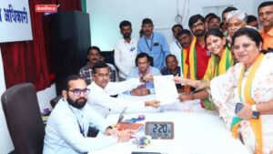 चाळीसगाव (प्रतिनिधी ) – भारतीय जनता पक्षाने (भाजप) चाळीसगाव नगराध्यक्ष पदासाठी प्रतिभा मंगेश चव्हाण यांच्या उमेदवारीची अधिकृत घोषणा केल्यानंतर आज सोमवार दि. १७ रोजी भाजपच्या वतीने शहरात जोरदार ‘शक्तिप्रदर्शन’ करण्यात आले. नगराध्यक्ष पदासाठी सौ. प्रतिभा चव्हाण आणि नगरसेवक पदासाठी उर्वरित ३६ उमेदवारांनी आपला अर्ज दाखल केला.