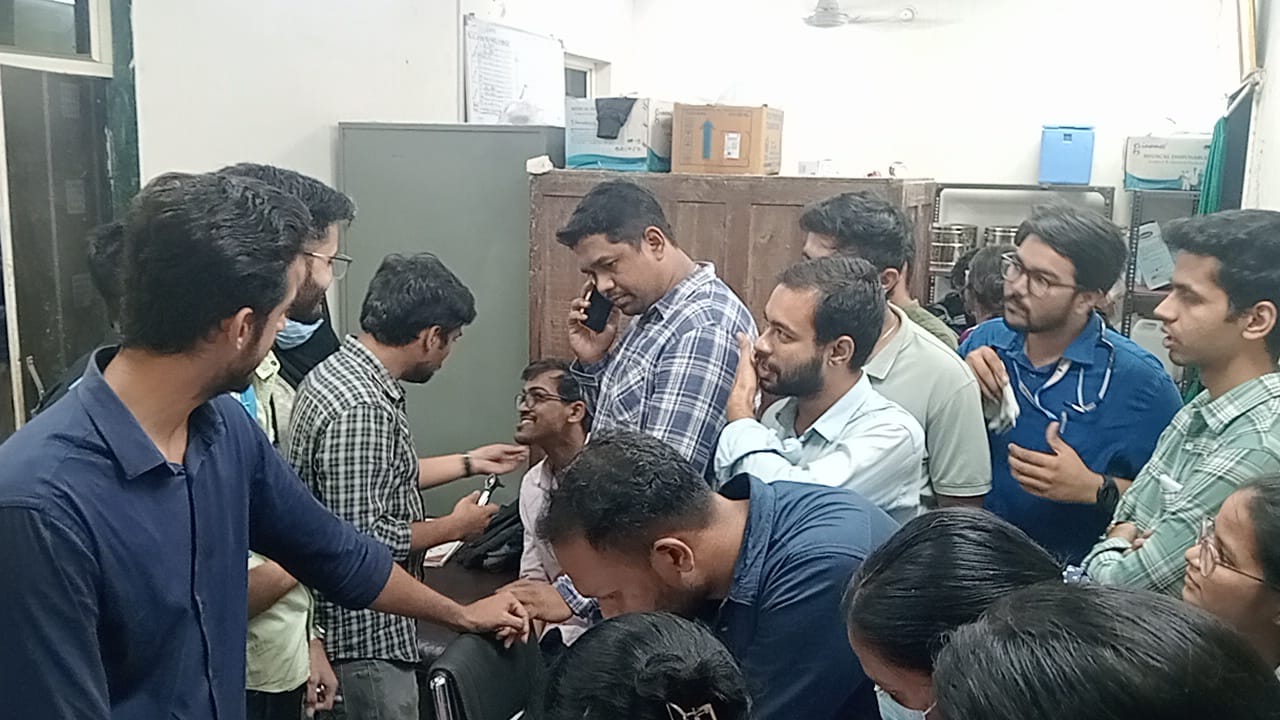 या वेळेला इतर सहकाऱ्यांनी धाव घेत डॉ. मोहित यांना नातेवाईकांच्या तावडीतून सोडवले. यानंतर रुग्णालयात जमाव जमा होत असल्याचे पाहून रुग्णाचे नातेवाईक रुग्णाला घेऊन खाजगी दवाखान्यात निघून गेले. घटनेची माहिती काढताच जिल्हापेठ पोलीस स्टेशनचे कर्मचारी रुग्णालयात आले.तसेच डॉ. मोहित गादिया यांच्यावर उपचार करण्यात आले. दरम्यान, कानशिलात लगावल्यामुळे डॉ. मोहित गादिया यांच्या कानाचा पडदा फाटला असून काही आठवडे त्यांना आराम करावा लागणार असल्याची माहिती वैद्यकीय अधिकाऱ्यांनी दिली.