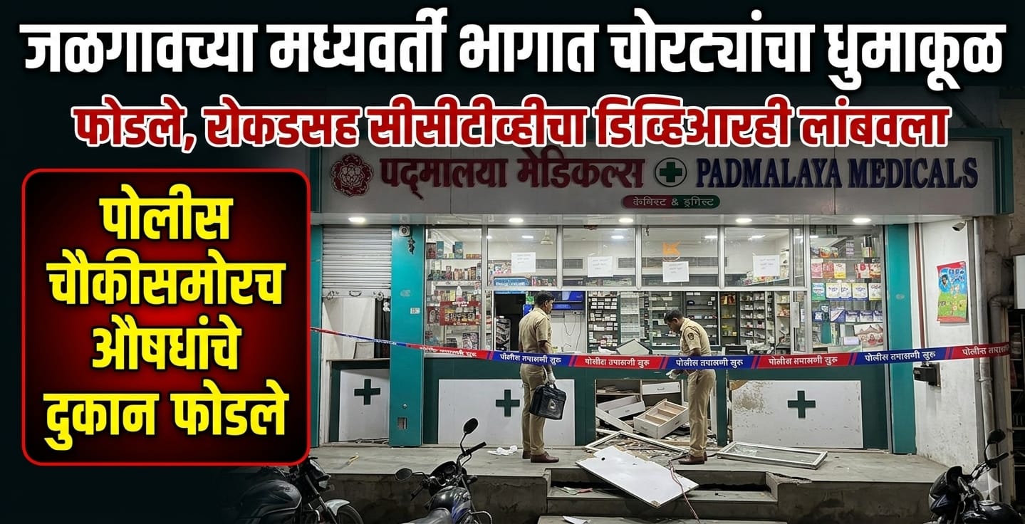 मंगळवारी पहाटे ४ वाजेच्या सुमारास कारमधून आलेल्या तीन संशयित चोरट्यांनी शनिपेठ परिसरात भिलपुरा पोलीस चौकी समोरचे मेडिकल दुकान लक्ष्य केले. त्यांनी येथील पद्मालय मेडिकलचे कुलूप आणि कोंडा न तोडता शटर वाकवून आत प्रवेश केला. दुकानाच्या गल्ल्यातील साधारण ८ ते १० हजार रुपयांची रोकड, १६ कॅमेऱ्यांचा डीव्हीआर (DVR), कोल्ड्रिंक्सच्या बाटल्या आणि आईस्क्रीम असा मुद्देमाल चोरट्यांनी लांबवला. यानंतर त्यांनी शेजारील इतर दोन दुकानेही फोडण्याचा प्रयत्न केला, मात्र त्यात त्यांना यश आले नाही.