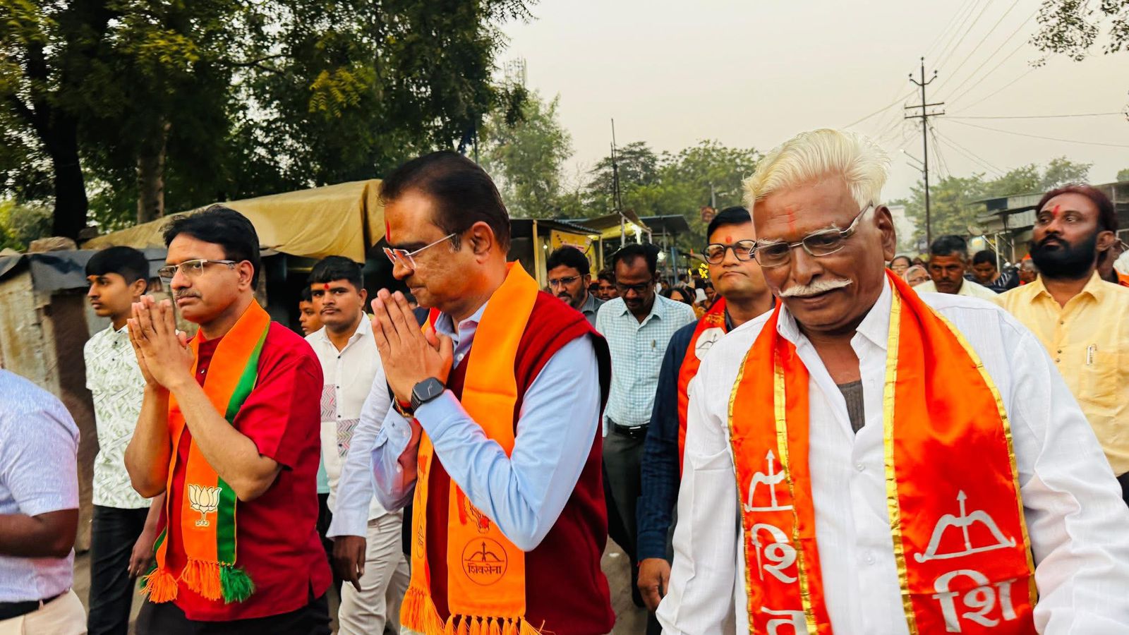 यावेळी, महायुतीचे नगराध्यक्ष पदाचे अधिकृत उमेदवार डॉ. नरेंद्र धुडकु ठाकूर आणि प्रभाग क्रमांक ३ अ च्या अधिकृत उमेदवार छायाताई आनंद दाभाडे व ब च्या कमलाताई गोपाल पाटील यांच्यासाठी जोरदार प्रचार करण्यात आला.