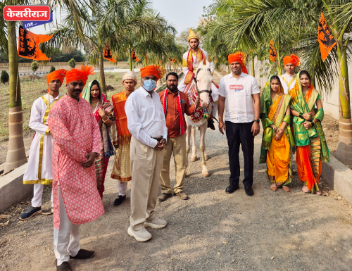 शिवजयंतीनिमित्त काढण्यात आलेल्या मिरवणुकीत छत्रपती शिवाजी महाराज यांचा सजीव देखावा साकारण्यात आला होता. तसेच वारकरी संप्रदायाची प्रथा जपणारा देखावाही सहभागी होता. छत्रपती शिवाजी महाराज यांची वेशभूषा निसर्ग भैराम यांनी साकारली होती. तसेच विठ्ठलाची वेशभूषा निरज वाठोरे व रूख्मीणीची वेशभूषा आरती बेले या विद्यार्थीनीने साकारली. ढोलताशांच्या गजरात निघालेल्या या मिरवणुकीने उत्साह संचारला होता. यावेळी छत्रपती शिवाजी महाराज यांचा जयजयकार करण्यात आला. जय भवानी, जय शिवाजी अशा घोषणांनी परिसर दणाणला होता.