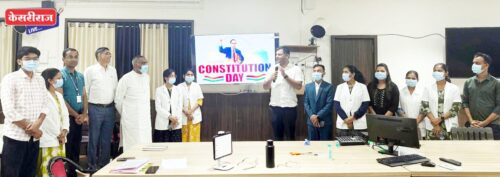 जळगाव ( प्रतिनिधी ) – डॉ. उल्हास पाटील वैद्यकीय महाविद्यालयात संविधान गौरव दिनानिमित्त संविधान पत्रिकेचे वाचन करण्यात आले. या कार्यक्रमाला प्रमुख पाहुणे म्हणून संस्थेचे अध्यक्ष माजी खा. डॉ. उल्हास पाटील, हृदयरोग तज्ज्ञ डॉ. वैभव पाटील, रजीस्ट्रार प्रमोद भिरूड, नर्सिंग विभागाचे संकेत संकपाळ आदी उपस्थित होते. याप्रसंगी डॉ. वैभव पाटील यांनी संविधानातील हक्क आणि कर्तव्यांविषयी माहिती दिली. तसेच संविधानाचे जनक भारतरत्न डॉ. बाबासाहेब आंबेडकर यांना अभिवादन करण्यात आले.