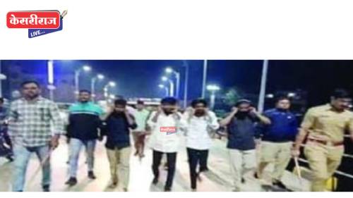 भीमनगर परिसरात झालेल्या हाणामारीत सार्वजनिक शांततेचा भंग करणाऱ्या चार जणांना पोलिसांनी तत्काळ ताब्यात घेतले. त्यानंतर मेहतरवाड्यातून शहर पोलिस ठाण्यापर्यंत या संशयितांची धिंड काढण्यात आली. कारवाईदरम्यान पोलिसांनी त्यांना पोलिसी हिसका दाखवत कायद्याचे गांभीर्य स्पष्ट केले.