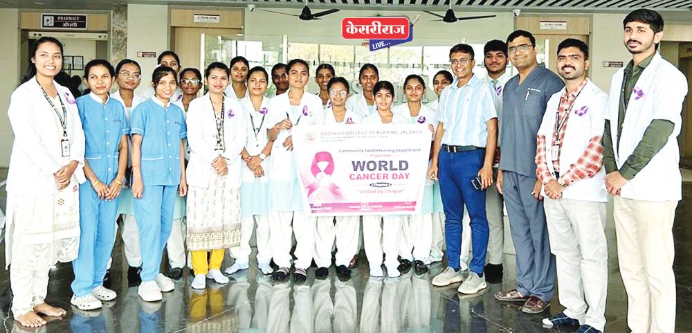 जळगाव (प्रतिनिधी) :- गोदावरी नर्सिंग महाविद्यालयातील विद्यार्थ्यांनी कम्युनिटी हेल्थ नर्सिंग विभागाच्या वतीने जागतिक कर्करोग दिनानिमित्त चांडक कॅन्सर हॉस्पिटल, जळगाव येथे कर्करोग जनजागृती कार्यक्रमाचे आयोजन केले होते.