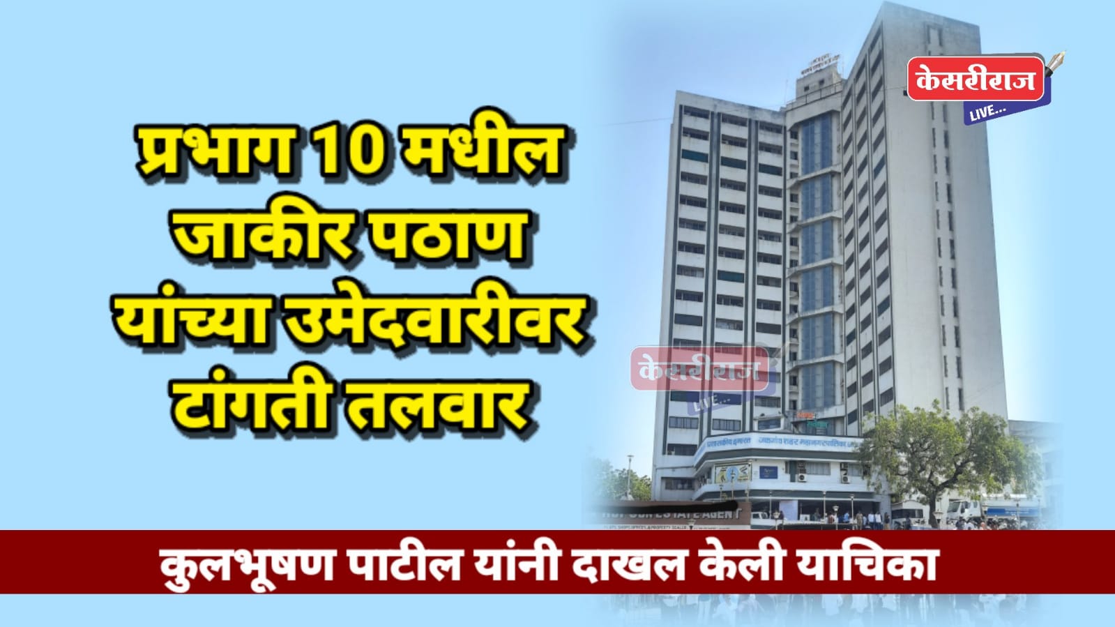 जळगाव (प्रतिनिधी) : जळगाव शहर महानगरपालिका निवडणुकीच्या रणधुमाळीत प्रभाग १० ‘ड’ मधील लढत आता कायदेशीर पेचात अडकली आहे. महायुतीचे उमेदवार जाकीर खान पठाण यांच्याविरोधात महाविकास आघाडीचे उमेदवार कुलभूषण पाटील यांनी छत्रपती संभाजीनगर खंडपीठात याचिका दाखल केली आहे. यामुळे जाकीर खान पठाण यांच्यावर अपात्रतेची टांगती तलवार कायम असून राजकीय वर्तुळात मोठी खळबळ उडाली आहे.