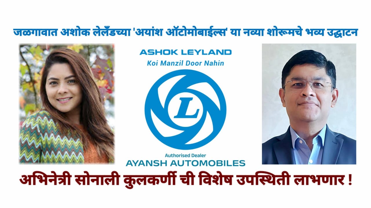 जळगाव (प्रतिनिधी) : शहरात हिंदूजा समूहाच्या अशोक लेलँडचे जळगावचे अधिकृत सेल्स व सर्व्हिस पॉईंट म्हणून ‘अयांश ऑटोमोबाईल्स’ या अत्याधुनिक लाईट कमर्शियल व्हेइकल्स शोरूमचे भव्य उद्घाटन उद्या गुरुवारी, ३० ऑक्टोबर रोजी दुपारी ३ वाजता होणार आहे. अशोक लेलँड लिमिटेडचे एलसीव्हि प्रमुख विप्लव शाह यांच्या शुभहस्ते हा शानदार सोहळा संपन्न होणार असून, कार्यक्रमाचे खास आकर्षण म्हणून महाराष्ट्राची अभिनेत्री सोनाली कुलकर्णी यांची सुद्धा विशेष उपस्थिती लाभणार आहे. या उद्घाटन सोहळ्याला शहरातील अनेक मान्यवरांची उपस्थिती राहणार असल्याचे आयोजकांनी सांगितले.