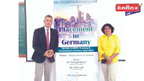 जळगाव ( प्रतिनिधी ) – नर्सिंगचे शिक्षण घेणाऱ्या विद्यार्थी व विद्यार्थींनीना जर्मन देशात रोजगाराच्या मोठया संधी उपलब्ध असून कठोर परिश्रम आणि गुणवत्तेच्या आधारावर या संधी मिळवू शकतो असे प्रतिपादन अॅझ ईडीयु कॉर्पो ट्रेनिंग अँन्ड डेव्हलपमेंट इंडस्ट्रीचे चेअरमन परमजित सेहगल यांनी आज गोदावरी कॉलेज ऑफ नर्सिंगमध्ये केले.