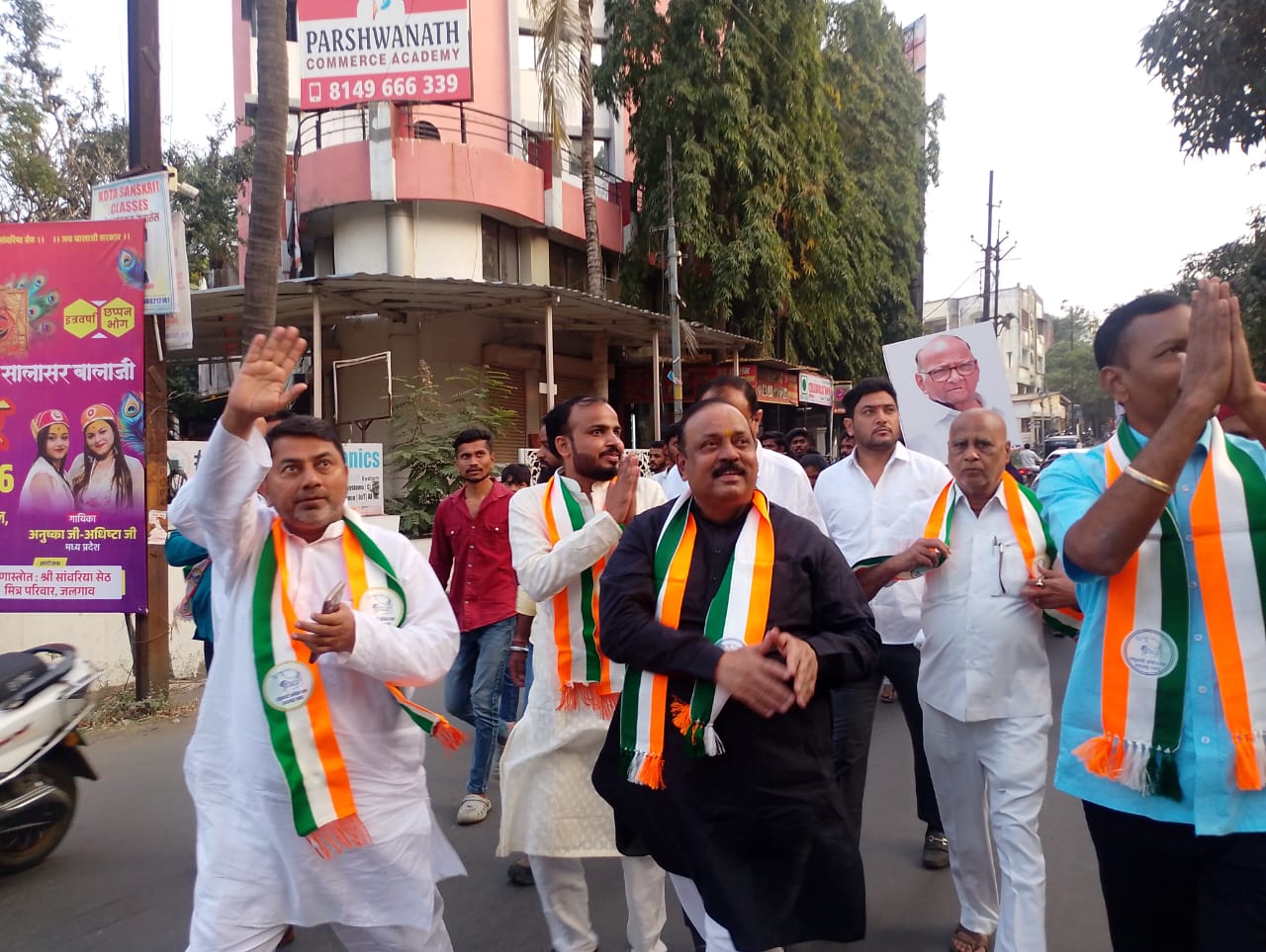 जळगाव प्रतिनिधी : जळगाव महानगरपालिका सार्वत्रिक निवडणुकीच्या पार्श्वभूमीवर राजकीय वातावरण चांगलेच तापले आहे. रविवारी, दि. ५ जानेवारी रोजी राष्ट्रवादी काँग्रेस (शरदचंद्र पवार) पक्षाच्या अधिकृत उमेदवारांच्या प्रचारासाठी प्रभाग क्रमांक १२ मध्ये भव्य प्रचार फेरी काढण्यात आली. या फेरीच्या निमित्ताने पक्षाने परिसरात मोठे शक्तीप्रदर्शन केले. १२अ मधील उमेदवार ललितकुमार घोगले यांच्या प्रचार फेरीला मोठा प्रतिसाद मिळाला.