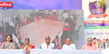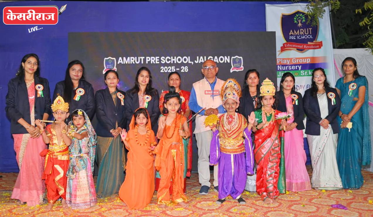 जळगाव (प्रतिनिधी): गुजराल पेट्रोल पंप परिसरातील गौरवास्पद ‘अमृत प्री-स्कूल’चा वार्षिक स्नेहसंमेलन व बक्षीस वितरण सोहळा नुकताच मोठ्या उत्साहात संपन्न झाला. याप्रसंगी चिमुकल्यांनी सादर केलेल्या “सत्ययुग ते कलियुग – एक मानवी देहाचा प्रवास” या विशेष नाटकाने उपस्थितांची मने जिंकून घेतली.