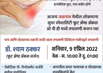 Read moreDetailsजळगाव ( प्रतिनिधी ) - पुण्यातील लोकमान्य हॉस्पिटल यांची सुपर स्पेशालिटी फूट अँड. अँकल ऑर्थोपेडिक ओ. पी. डी. आता जळगावमध्ये ...